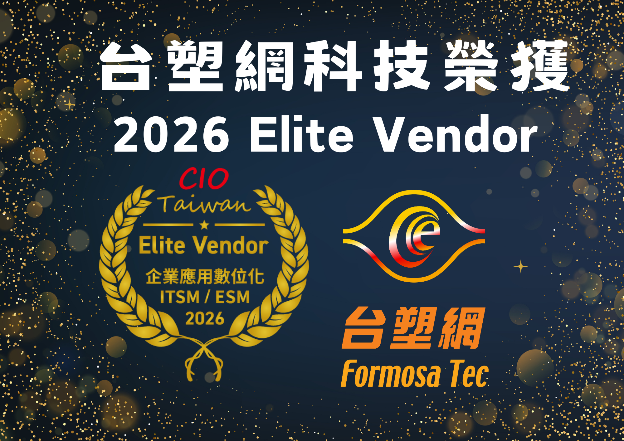台塑網長期深耕企業資訊服務市場,累積跨產業服務經驗,涵蓋大型企業資訊系統建置、供應鏈資訊整合、資料治理、資訊安全及雲端應用等領域,獲得2026 Elite Vendor獎項,是對台塑網團隊的最大肯定。充分證明台塑網提供的解決方案在市場具有高度競爭力與長期支持價值。
